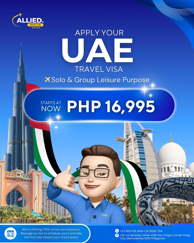 ✈️ UAE Visa Assistance by Allied Travel One – Now Just PHP 16,995 per person! up to 30 Days Stay 🎉(No Appearance Needed) Planning to visit the UAE’s dazzling cities and cultural wonders? Whether it’s exploring Dubai’s modern skyline, shopping in Abu Dhabi, or experiencing desert adventures, Allied Travel One is here to make your […]